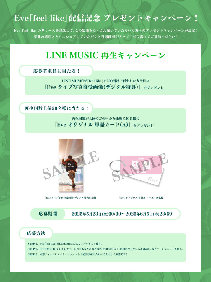 STEP①:Eve「feel like」をLINE MUSICにてフルサイズでたくさん聴く。