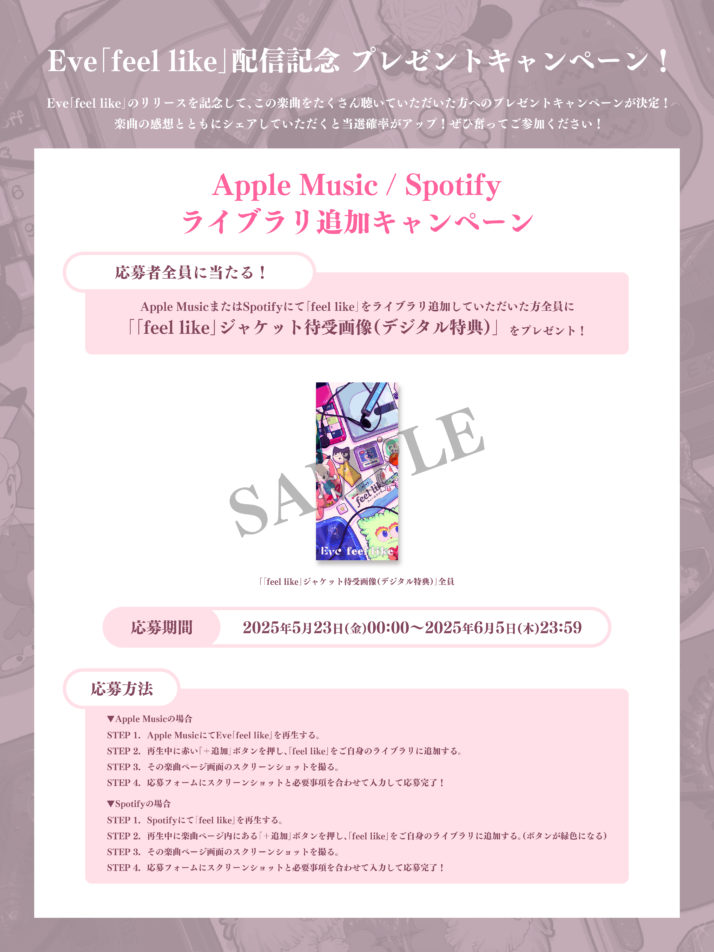Eveの誕生日を記念して、新曲「feel like」を本日5月23日(金)0時にサプライズで配信リリースいたしました。