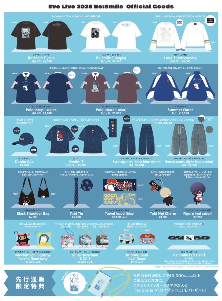 Eve Live 2026「Re:Smile」オフィシャルグッズのラインナップを公開いたしました。